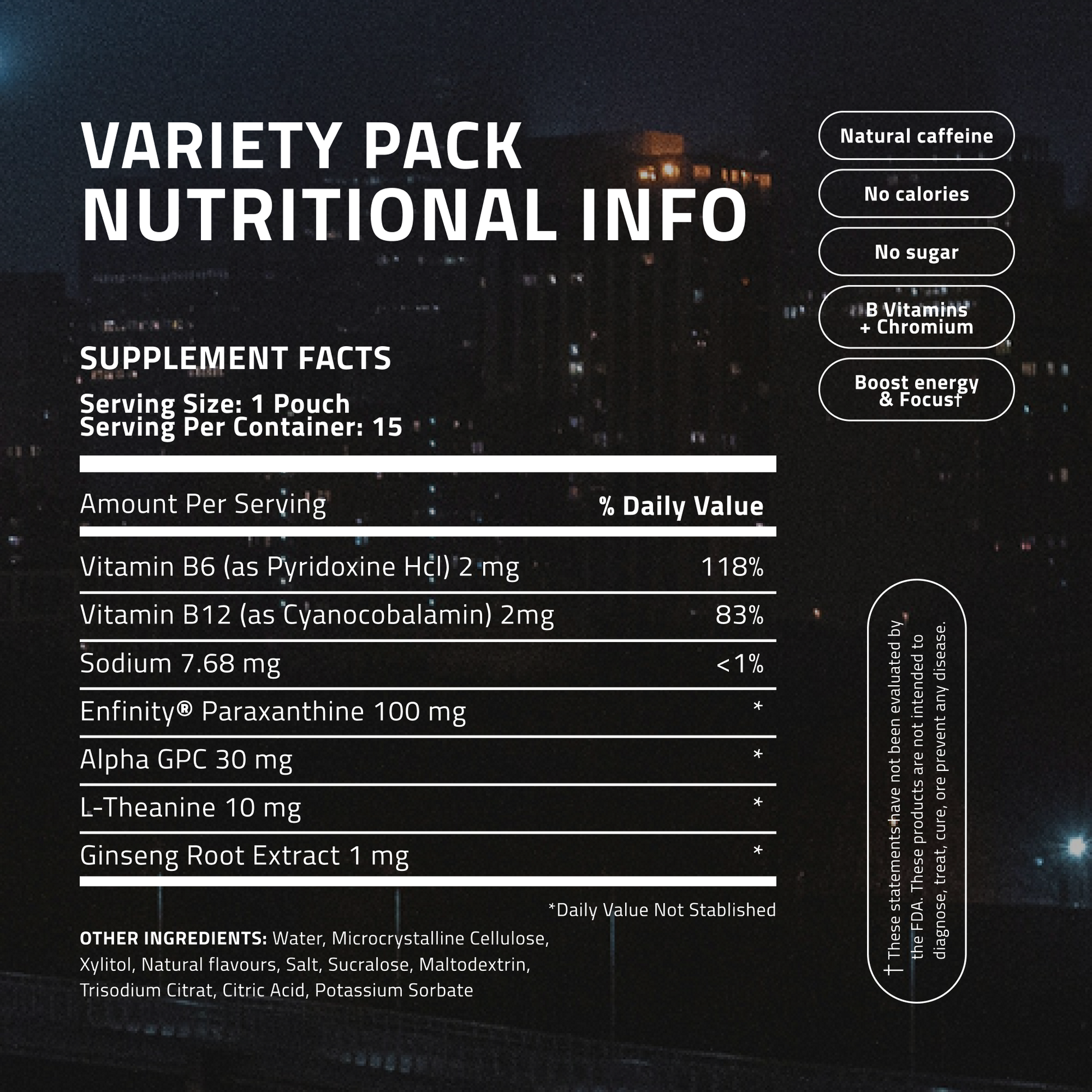 L-Theanine and Enfinity® work synergistically to promote smooth energy.