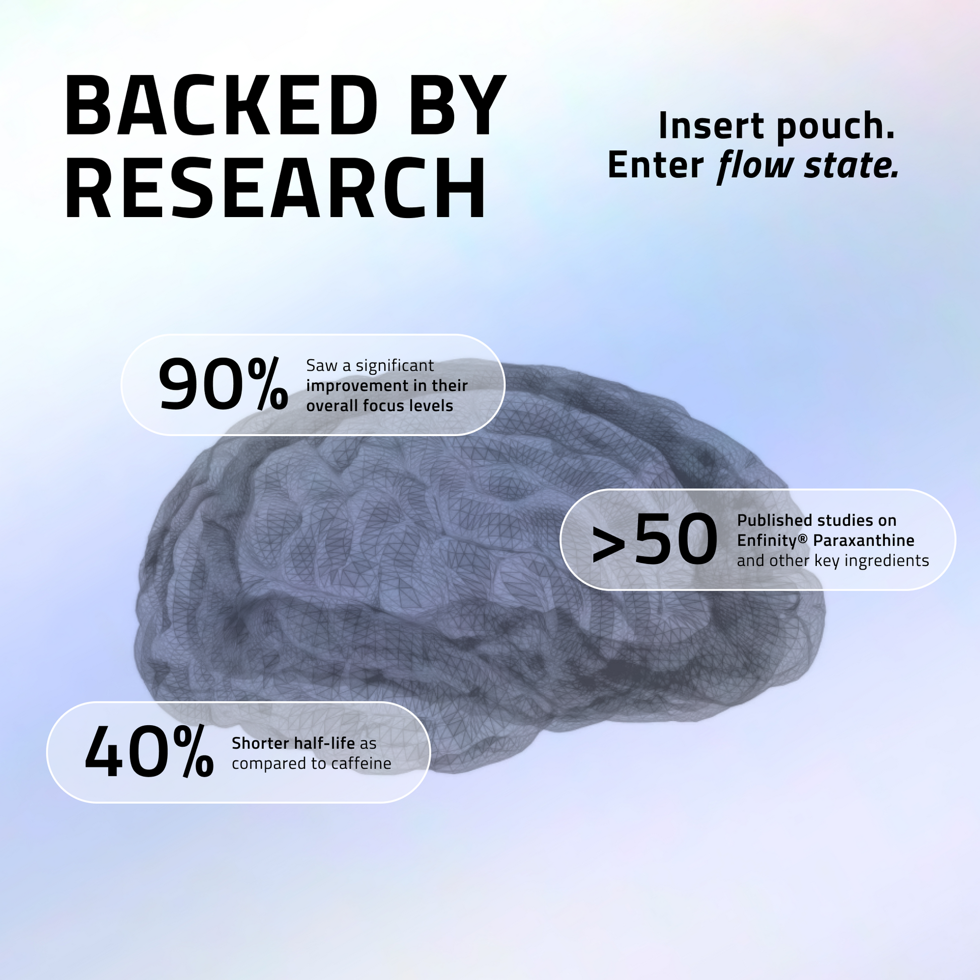 We recommend taking between 3-4 Pouches per day whenever you need an energy boost, have cognitively demanding work, or would like to achieve Flow State. Do not exceed 5 Pouches per day.