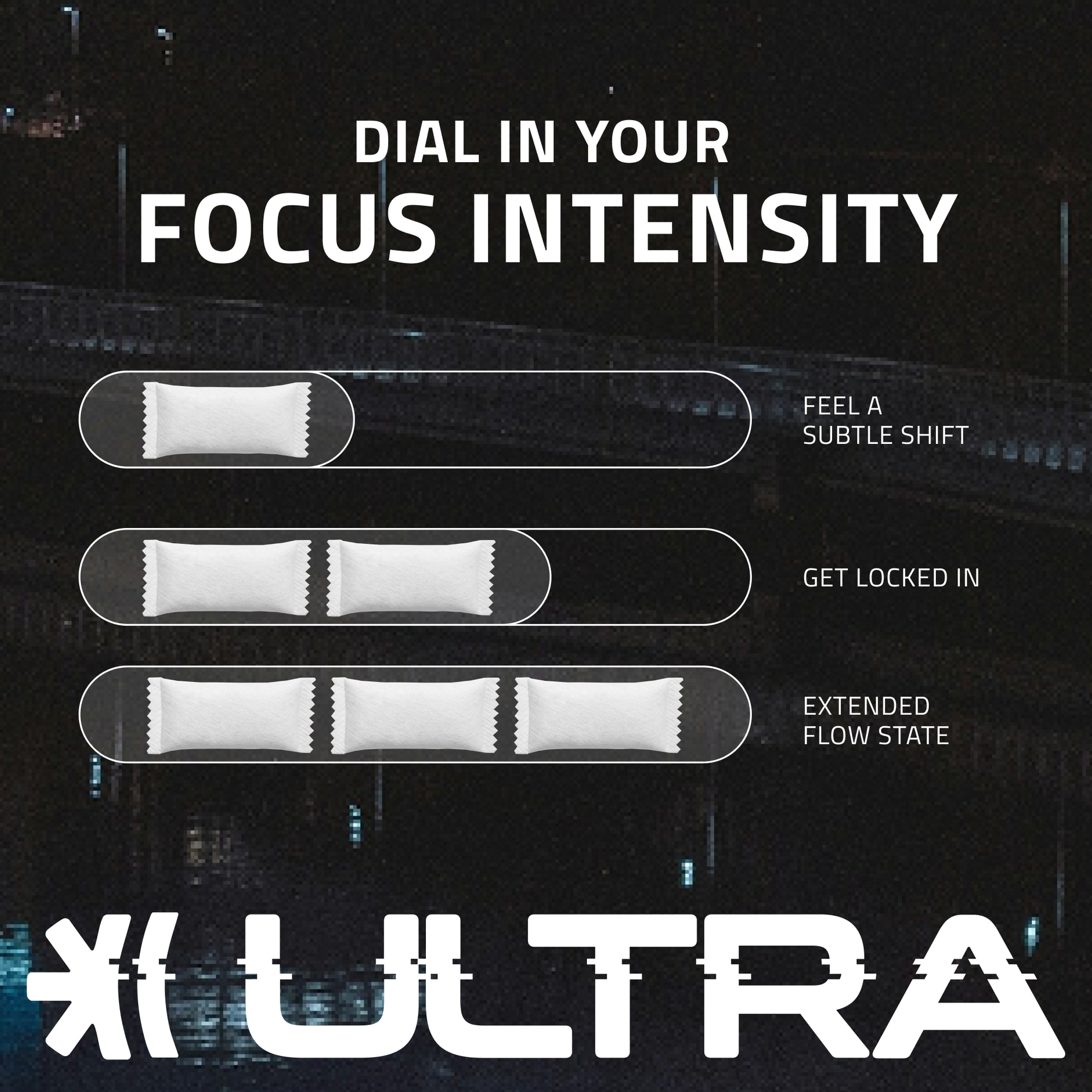 ULTRA delivers a clean cognitive lift within minutes. You'll notice enhanced mental clarity, improved ability to stay on task, and a calm yet energized state. Unlike stimulants that flood your system, ULTRA supports a sustainable focus state that feels natural—just an optimized version of your normal capabilities.